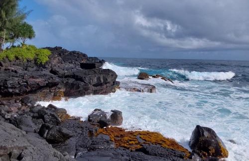 Featuring garden views, Ainaloa Home of Big Island for Queens size bedroom in Ainaloa provides accommodations, a garden, a terrace, and a bar. This country house features free private parking, a shared kitchen, and free Wifi. The accommodation offers full-day security and luggage storage space for guests. All units comprise a seating area, a dining area, and a fully equipped kitchen with various cooking facilities, including an oven, a microwave, a toaster, and a fridge. A stovetop, a minibar, and kitchenware are also available, as well as a coffee machine. At the country house, each unit has bed linen and towels. Available, the breakfast at the property includes Asian dishes along with a selection of warm dishes and fruit. Lava Tree State Park is 6.6 miles from the country house, while Lava Tree State Monument is 10 miles from the property. Hilo International Airport is 18 miles away.