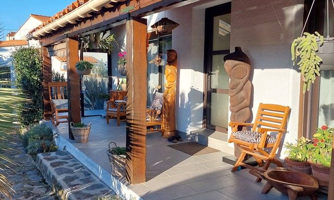- Air-conditioned 4-person house with garden and pool 10 minutes from the beach
