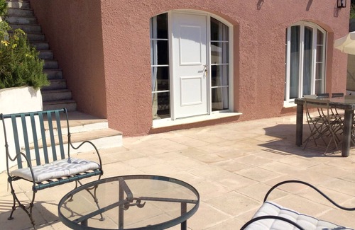 2 rooms very luminous and air-conditioned of 42 m2 about opening on immense terrace of 70 m2 in villa with garden and swimming pool.