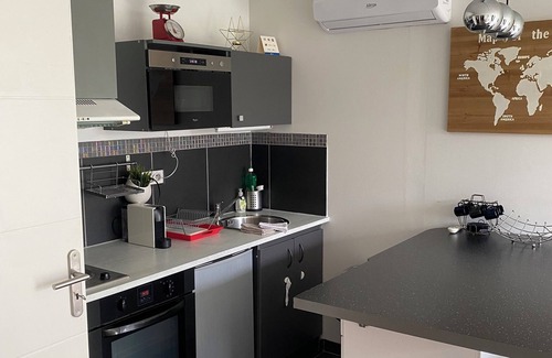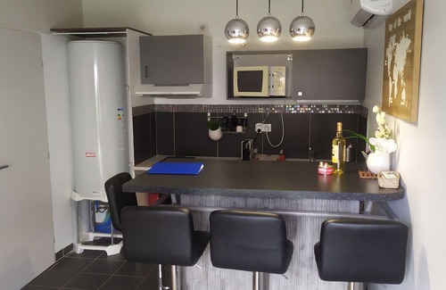 Le studio se trouve sur notre terrain, juste derrière notre maison, Il fait 30 m2 complètement indépendant, climatisé car forte chaleur type canicule parfois, et bien chauffé en hivers. Idéale pour 2 Personnes et Maxi 4