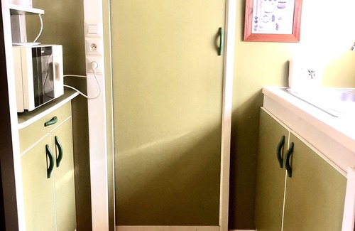TV, mini oven, microwave, refrigerator, ceramic glass hob, coffee maker, electric barbecue
