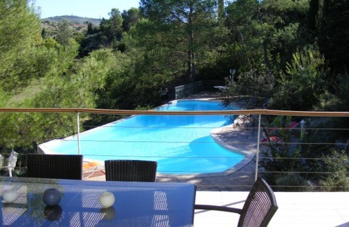 Stone house on 6 hectares closed pool with a private river. Covered terraces surround the house. A wide staircase from the terraces provides access to the infinity pool 18 meters long and 8 wide. Nearby is a stone hunting lodge of moderate comfort can accommodate 2 additional people. For lovers of nature and fishing a private river borders the property; canoes are available. The property has outbuildings that can shelter bicycles, surfboards. Villa located near Montpellier (5km), on 6 hectare property fully enclosed. The villa is air-conditioned and includes a living room of 80 m2 with flat screen, DVD satellite and canal plus, a kitchen of 30 m2 with induction hob, microwave oven, dishwasher, ice machine, coffee maker, fridge , freezer, granite worktop and flat screen. 3 suites of 45 m2 with private bathrooms with TV or flat screen, and a room with double bed. Space with washing machine and ironing board.