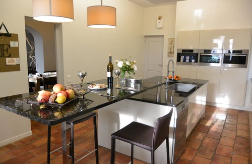 The lavishly renovated stone villa with complete privacy and fantastic views over the Luberon is located near Gordes and famous villages of Provence. Modern amenities such as a well-equipped kitchen, a large sun terrace, a seasonally heated pool and a betanque court ensure a relaxing stay. A fireplace in winter and air conditioning in summer ensure pleasant temperatures indoors.