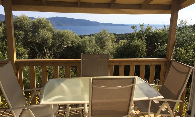 Air-conditioned mobile home facing the Gulf of Valinco 10 minutes from the beach | House in Olmeto
