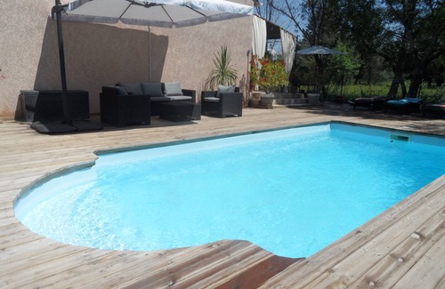 out of two) surrounded by a large wooden beach equipped with deckchairs and a garden furniture + a spa (6 bubble seats and jets, octagonal) to enjoy the generous sun of Provence.