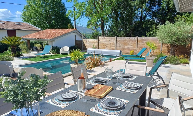 Air-conditioned villa, 5 bedrooms, heated pool, 2mn from St jean de Luz | House in Urrugne