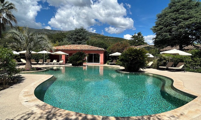 Air-conditioned villa with private garden and swimming pool is located in Carros. Air-conditioned villa with private garden and swimming pool provides accommodation, featuring Child Friendly, Kitchen, Designated Smoking Area, among other amenities. This Villa features Child Friendly, Kitchen, Designated Smoking Area, to make your stay a comfortable one.