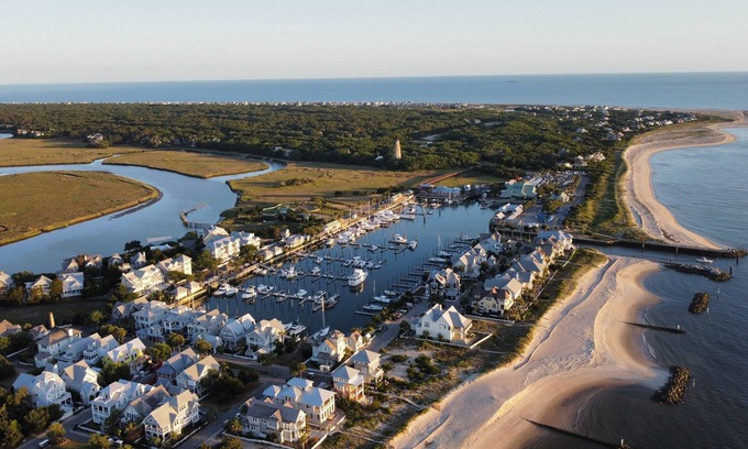 5 min walk from Bald Head Island Ferry Terminal, restaurants, shops, rentals