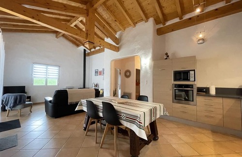 The AIRE-LEKU gîte is located on one level in a detached house located at the end of a cul-de-sac, near the owners' house, a stone's throw from the village of St Pée-sur-Nivelle. It comprises: - a large living room with a fully equipped kitchen (microwave, 2-burner induction/2-gas hobs, oven, dishwasher, microwave, fridge-freezer), a living room, and a lounge. - 2 bedrooms (1 double bed, 2 single beds) - a shower room - a toilet - a pantry with a washing machine Electric heating at an additional cost (meter reading). Bed linens are provided. Bathroom and household linen are available for rental. Wi-Fi internet access. Covered terrace with garden furniture and barbecue. Deckchairs. Private parking and courtyard. This cottage is located less than a kilometer from the village of Saint-Pée-sur-Nivelle, where you'll find all kinds of shops and activities. Lake St. Pée, with its swimming, pedal boats, and canoeing facilities, is 2.5 km away.
