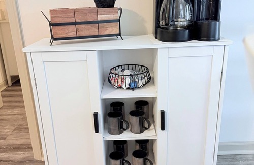 Fresh linens, towels, toiletries, laundry supplies, coffee station, grilling essentials, dog crate (med. size), highchair, pack-n-play, and fully equipped kitchen.