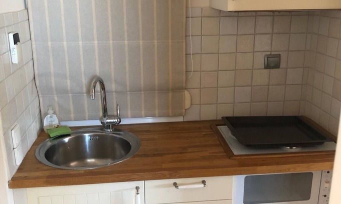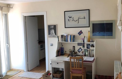 The property, attached to the owner’s house, has a separate entrance, a small kitchen with all utilities, one single bedroom and a living room with a double sofa bed, toilet/bathroom, a study desk, TV, Wi-Fi and music system. It also has access to a veranda, a large garden and vineyard.