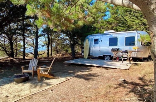 On 9 private acres overlooking the stunning Tunitas Beach and Pacific ocean from a breathtaking cliff top view. Stunning sunrises and sunset greet you in this fully equipped new 2022 Airstream. Fully loaded with all the amenities to make your glamping experience perfect. Fire pit, outside BBQ, outside griddle, A/C and fully stocked kitchen. Comes will full bathroom with shower. Truly a rare experience and located within 10 mins of Half Moon Bay shopping. Beach access short walk or drive.