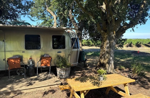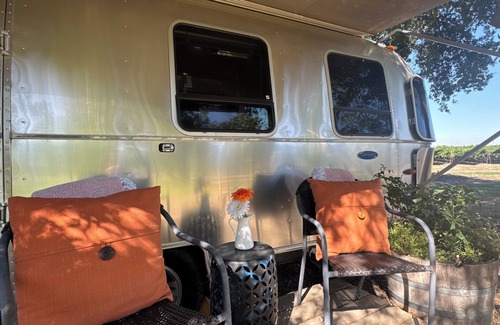 experience a classic Airstream in the heart of the Sacramento Delta. This southwestern themed RV is a great jumping off point to explore Delta living. Just some of the activities to enjoy: walking among the vines, cycling, boating on Steamboat Slough, birdwatching on Staten Island, kitesurfing near Rio Vista, visiting the historic towns of Locke and Walnut Grove, and exploring the many local wineries. You could also just hang out on the front deck and let yourself totally relax into country life.