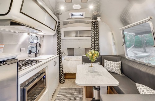 - The single-story main house requires 1 small step up for entry, while the Airstream requires 2 steps for access