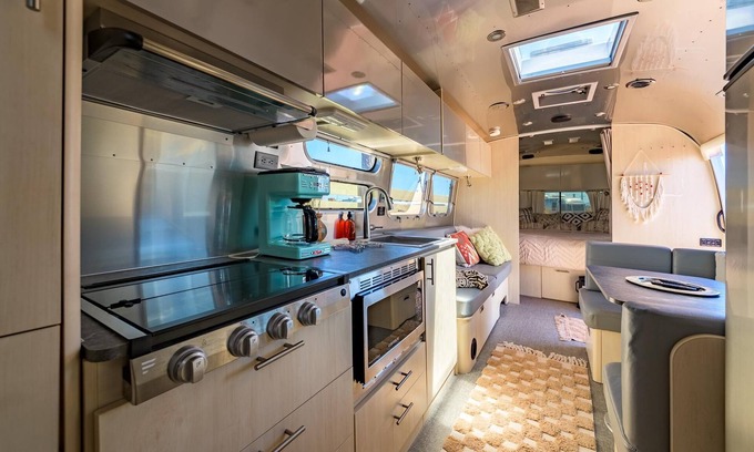 Airstream L (22FB Flying Cloud 2012) is a versatile and family-friendly unit that combines classic Airstream style with practical comfort, making it ideal for families or groups needing multiple beds.The main sleeping area includes a queen bed (60 x 75) with power outlets and USB ports on both sides. In addition, the unit offers a lower bunk bed (Standard Full 54 x 76) and an upper bunk (Small Single / RV Twin 30 x 78), perfect for children or additional guests. A dinette bed (42 x 76) and a non-fold-out lounge bed (72) provide even more flexibility for sleeping arrangements.The kitchen features a generous 8 cu. ft. refrigerator with freezer, a 3-burner propane stove (no oven), microwave convection oven, and a 12-cup drip coffee maker, along with complimentary coffee, sugar, and an electric kettle. Basic utensils, pots and pans, dishes, and drinkware are all included.The private bathroom includes a standing shower with a small bench, toilet, and sink, with shampoo and body wash provided.Comfort is ensured with an AC/heat thermostat located near the TV, and entertainment is available via multiple Insignia LED HD Smart FireTVs, including one located at the bottom bunk.Airstream L is pet-friendly and includes a private Jacuzzi, as well as WiFi, smoke and CO detectors, and a fire extinguisher. Guests also enjoy access to shared amenities such as a communal sauna, outdoor shower, BBQ area, dog park, and cold plunges (coming soon!).This Airstream is an excellent choice for families or small groups looking for a well-equipped, flexible, and comfortable stay.