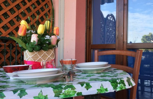Charming apartment for up to 6 guests, 600m from the beach and 50m from the center (Viale dei Pini). It features a living room with kitchenette and double sofa bed, 1 bedroom with double bed, 1 bedroom with two single beds, 1 bathroom with shower, large terrace with outdoor furniture, TV, washing machine, A/C, microwave, kettle, safe, and American coffee maker. Uncovered parking included. Swimming pool will be opened from the end of June untile the end of August (dates may change due to the weather conditions).