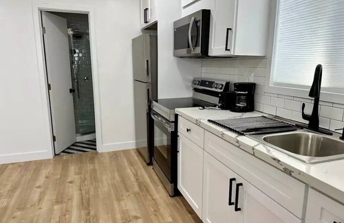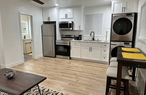 Keep it simple at this peaceful and centrally-located Studio. Perfect for Nurses / remote workers & others looking for a place to rest and take care of things. With a full kitchen, brand new washer & dryer and a completely new space this unit has all you need. Newly built in the fall of 2022 this place has everything brand new! We want to give you a great place to live and work if needed. We also have a nice outside area and onsite parking.