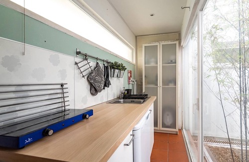 This modern house with great decor can accommodate up to 4 guests. It has a mezzanine bedroom and a sofa bed for two in the living room. The environment of the house is very relaxing, living room with fireplace, sofas, tv and internet will provide you great times of relax. A great kitchen is ready to receive your cooking skills.