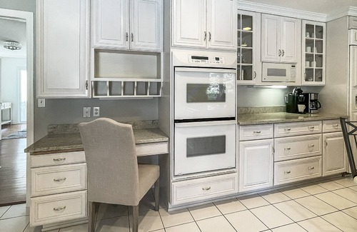 - Classic Kitchen with vast island and bar eating, stocked with all the essential tools for grilling, baking and/or making cocktails by the pool.