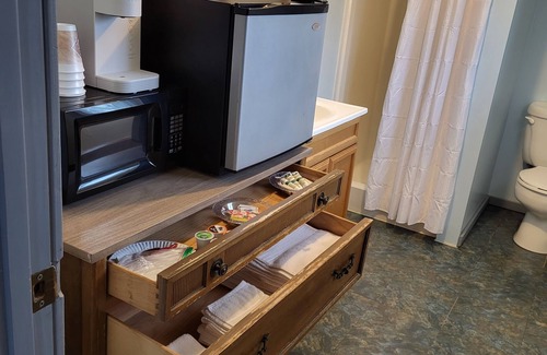All of our; apartment, cabins and rooms includes full private bathrooms, coffee maker, microwave and refrigerator.