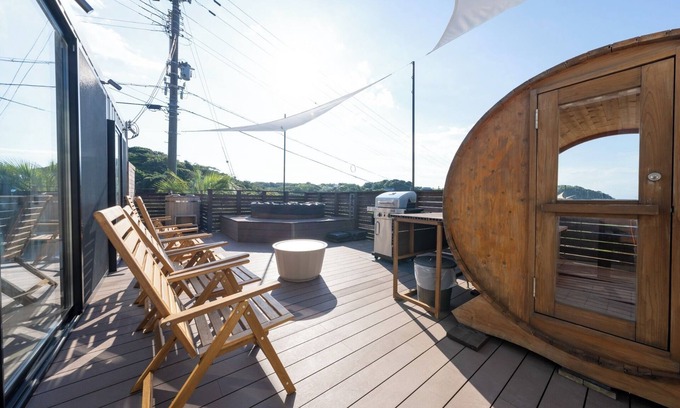 AKESUKE is a private villa on Awaji Island with the concept Uncover Your Heart and Soul Each of the two villas has a private sauna cold bath with chiller large jacuzzi and gas BBQ grill An indoor lowsmoke grill is available for rainy days