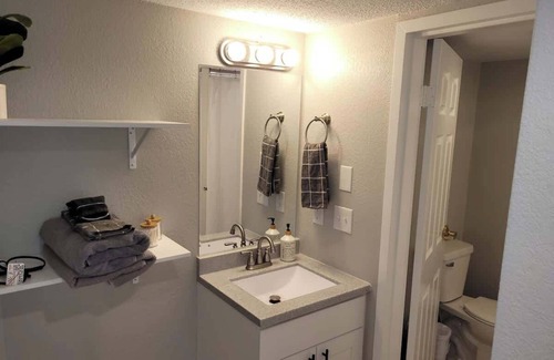 Cozy and comfortable for a weekend or a long term stay. Newly refinished and furnished space with kitchen, full bath and 1 King bedroom.