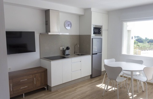 Tourist apartment built in 2024 with two keys located in a house of 8 apartments. It consists of an open space with a 1.60m double bed, a 1.60m sofa bed with a high quality mattress and a kitchen area with ceramic hob, extractor hood, Dolce Gusto coffee machine and all the necessary kitchen utensils for cooking. The apartment sleeps a maximum of 4 people and has its own bathroom. The entire apartment is wheelchair accessible and has television and air conditioning. There is also a small area in front of the apartment with table and chairs to enjoy the outdoors.