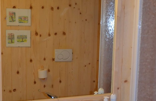 A small and delightful mountain cabin consisting of a careful and practical kitchen, a large bathroom with
