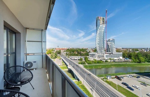 The flat is located near the centre of Rzeszów, on Al. Majora Wacława Kopisto. It is an area rich in all the necessary points of interest during your stay. Numerous shops, tourist attractions and restaurants will certainly make your stay more pleasant and ensure that our guests will not miss anything. The unique location of the building on the Wisłok River itself, guarantees proximity to nature and many unique paths for walking and spending time outdoors. Nearby, there are the Rzeszów Boulevards, the Park of Culture and Leisure, a skatepark and a stadium. The nearest bus stops, located only 120 metres from the building, will allow you to get around the city quickly and efficiently using public transport. Surrounding shops such as Lidl (450 m) or Żabka (450 m) will allow you to stock up on all the necessary purchases during your stay. The large Millenium Hall shopping mall is also 500 metres away. Thanks to the excellent restaurants and cafés located in the vicinity of the flat, our guests will be able to enjoy a delicious meal and have a good time. The nearest establishments are Domino's Pizza (180 m), Molto (220 m) and Anatomiakawy (500 m). It takes only 8 minutes by car or 15 minutes by bus to reach Rzeszów Główny train station.