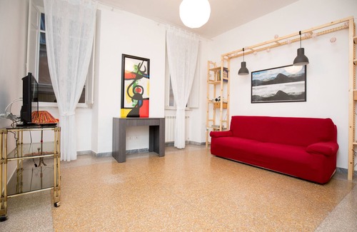 THE ACCOMMODATION, located on the first floor, has a very large and bright double bedroom, a nice living room with sofa bed, also double, a kitchen equipped with every comfort and utensils (refrigerator, freezer, oven, toaster and washing machine) and a bathroom complete with all services - The house has wi-fi service.