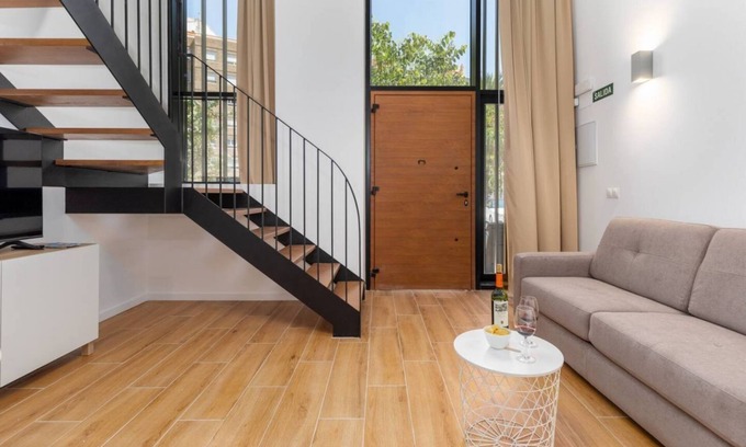 Travel Hábitat Alameda Suites are modern and well-equipped loft apartments on two levels, 8 minutes walk from the splendid City of Arts and Sciences and 15 minutes from the Alameda metro stop with connections to the airport and main locations in the city. These loft apartments are located at street level with direct access and have a bedroom with a bathroom and a double bed on the upper floor. On the ground floor, there is a living room with a comfortable folding sofa bed and flat-screen SMART TV on each floor, free Wi-Fi internet, as well as a kitchen equipped with an oven, microwave, refrigerator and various small appliances (toaster, kettle, capsule coffee maker). Bathrooms include hair dryers and clothes irons.