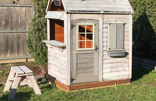 Child friendly with high chair, port-a-cot and stroller for use. The backyard has a grassy area for the kids to play on.