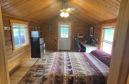 Alaska log cabins on the pond B & B offers 5 accommodations with coffee/tea makers and ceiling fans. Rooms open to furnished balconies or patios. These individually furnished accommodations have separate dining areas. Beds feature Egyptian cotton sheets and premium bedding. Guests can make use of the in-room refrigerators and microwaves. Bathrooms include showers.