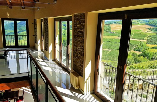 The Via del Sale Holiday Home is a typical Langa stone house completely renovated with charm; it is structured on three floors. The roof is visible and throughout the house there are panoramic windows, specially left without curtains to fully enjoy the surrounding landscape. The ground floor has a large living room with large windows, a 1960s table with six chairs, a three-seater sofa and a two-seater sofa, a large fully equipped kitchen with oven, microwave, dishwasher, fridge, freezer, induction hob, coffee machine, kettle. A bathroom with a shower. Upstairs another open plan lounge with large panoramic windows overlooking the surrounding muscat vineyards, with double sofa bed, two small tables, 54-inch TV, two bedrooms both with double bed, a four seasons wardrobe, two bedside tables with two lamps , a four drawer dresser. A bathroom with a shower. It can comfortably accommodate six people. In the basement there are two cellars where there are washing machines, two clothes racks, ironing board and iron, and cleaning products. The house externally has a private courtyard and a porch where you can enjoy the refreshments of nature, and taste the wines and typical products of the area outdoors and in total tranquility. The location is ideal to see the beautiful hills, the beautiful vineyards and to explore Alba and its surroundings.