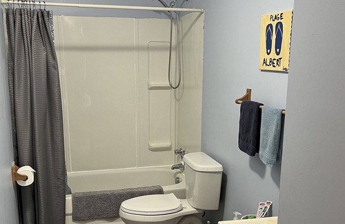 Only a 5 min walk to sink your toes in the beautiful sand. Great swimming beach for kids. The water is shallow. If you like to bike, there are trails to Victoria Beach. Take a ride to the pier and the bakery. Or hike Elk Island.