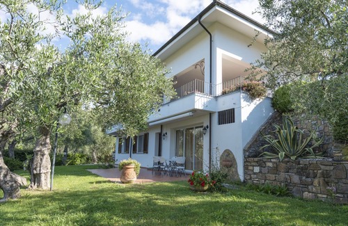 Beautiful, comfortable villa "Alberto", surrounded by trees and meadows. 2 apartments in the property. In the district of Monade Santa Lucia 2.5 km from the centre of Diano Marina, 7 km from the centre of Imperia, 18 km from the centre of Alassio, in a secluded, elevated position residential area (villas), 1.5 km from the sea, in the countryside. For shared use: large, well-kept garden 2'500 m2 (fenced) with lawn and plants, orchard, lawn for sunbathing, swimming pool secured (8 x 4 m, depth 120 - 150 cm, seasonal availability: 01.Apr. - 01.Nov.). In the house: burglar alarm system. 1 km long steep, narrow motor access. E-charging station. Shop 2.4 km, supermarket 2.8 km, restaurant 150 m, bus stop 10.7 km, railway station "Diano" 2.5 km, sandy beach "Diano Marina" 1.5 km, indoor swimming pool 2.2 km. Marina 2 km. Please note: residence with electric gates. Additional accommodations can be booked. Property ref. IT1820.626.1/2 is situated on the same property.