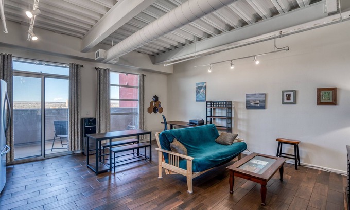 2 bedroom condo, 800 square feet. Close to everything downtown centralized location. Secure parking and secure building. Private balcony with great views. Very modern condo. This place will have everything you need to enjoy your stay. Even though you will be in the city center the condo is well insulated from sound so you will have a quiet environment to relax in during your down time. There breweries, restaurants, bars, and movie theater that are all within walking distance. There there are many other activities and attractions ABQ has to offer such as old town and the Bosque area nearby.