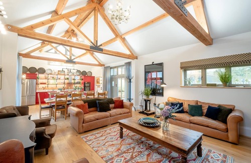 Tranquil location amongst farmland Stunning newly built converted barn 5 bedrooms and 5 bathrooms Woodburner, flatscreen TV and Wi-Fi Onsite parking EV charging point Ideal for family and friends gathering Pet friendly Use of 17 acre dog field (added extra)