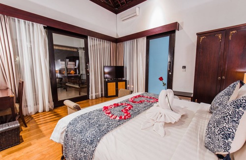 Your experience at Aldeoz Grand Kancana Villa Bali will be nothing short of spectacular. Enjoy spacious accommodations featuring private pools, separate sitting areas, and modern conveniences such as 40-inch LCD televisions and complimentary Wi-Fi. Indulge in the full-service spa, take a refreshing dip in the outdoor pool, or unwind in the children's pool while savoring delectable culinary offerings at the on-site restaurant. The dedicated staff is committed to ensuring your wedding celebration runs seamlessly, allowing you to focus on what truly matters—each other.