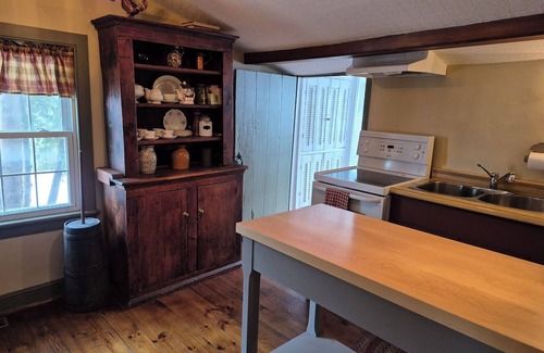 There are 2 nice size bedrooms located on the second floor, with beautiful original pine plank flooring. The room is decorated with antiques and historic lighting.