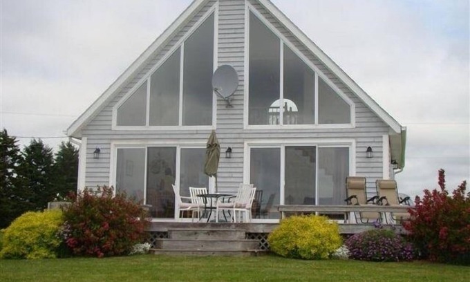 Experience the unspoiled natural beauty of Prince Edward Island in a quiet country location. Executive, beach house overlooking Northumberland Strait on an acre of lawn, trees and flowered gardens. Exceptional view of sunsets, blue herons, eagles, and seals all from your deck or take a walk along the private beach. Close to major golf destinations.