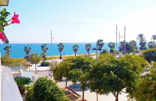 ALEXANDRA´s BEACH-PORT, an air-conditioned apartment with pool and large balcony. Fantastic view of the blue Mediterranean. Right at the beach promenade. 3 bedrooms, 2 complete bathrooms. Fully equipped kitchen, underground parking space included, high speed 5G Wifi-internet (for free).