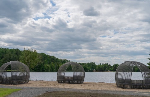 Algonquin's Edge Resort | Dome 5 is located in South Algonquin. Algonquin's Edge Resort | Dome 5 provides accommodation, featuring Air Conditioner, Security/Safety, Kitchen, among other amenities. This Cabin features Air Conditioner, Security/Safety, Kitchen, to make your stay a comfortable one.