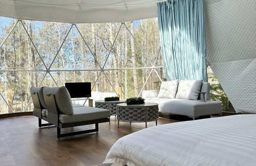 Algonquin's Edge Resort | Dome 6 is located in South Algonquin. Algonquin's Edge Resort | Dome 6 provides accommodation, featuring Air Conditioner, Security/Safety, Kitchen, among other amenities. This Cabin features Air Conditioner, Security/Safety, Kitchen, to make your stay a comfortable one.