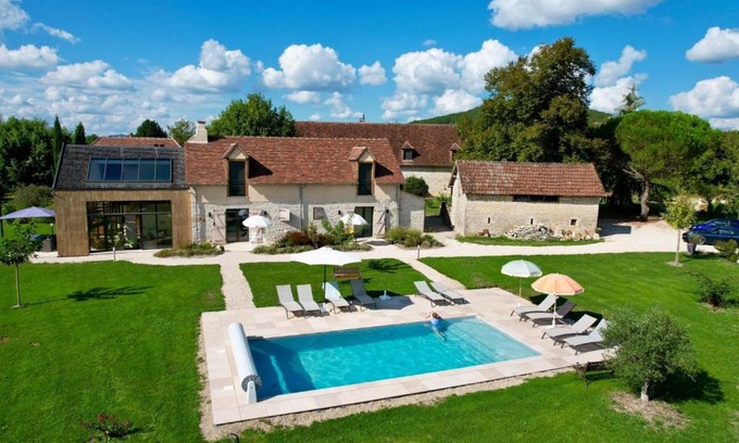 Providing garden views, Allée des noyers in Saint-Michel-de-Bannières provides accommodations and a shared lounge. This property offers a private pool and free private parking. The bed and breakfast has private entrance. All units feature air conditioning and a flat-screen TV. All rooms come with a coffee machine, a private bathroom, and free Wifi, while selected rooms have a terrace and some have pool views. At the bed and breakfast, all units come with bed linen and towels. A selection of options including local specialities, fresh pastries, and pancakes are served for the continental breakfast. Outdoor play equipment is also available at the bed and breakfast, while guests can also relax in the garden. Merveilles Cave is 17 miles from Allée des noyers, while Monkey Forest is 17 miles away. Brive Dordogne Valley Airport is 12 miles from the property.