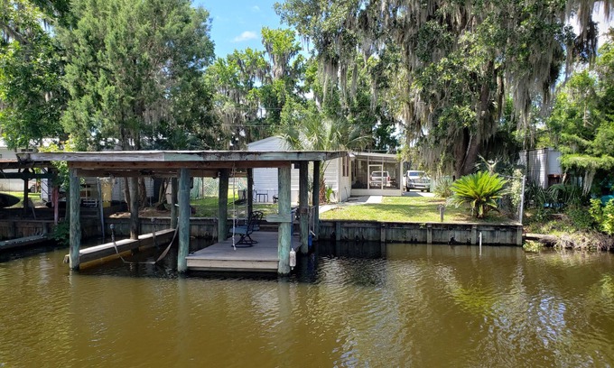 Cozy waterfront 2/2 located on a deep & wide canal near Lake George and Georgetown, FL. Just a 15-minute boat ride to Salt Springs, Silver Glen, or Jupiter Springs -it's all about the water and relaxation here! Bring a boat or rent one nearby. The area claims to be the "Bass Capital of the World"! Get your freshwater fishing and swimming in nearby and/or visit the white beaches and shopping in St. Augustine only about an hour away. Waterfront canal fishing & swimming (see full description under amenity "pool"). Welcome to our happy place! Pets accepted with a fee. Larger group? We have THREE homes on the same canal.. walking distance to each! See property id: 1514306 for Host reviews.
