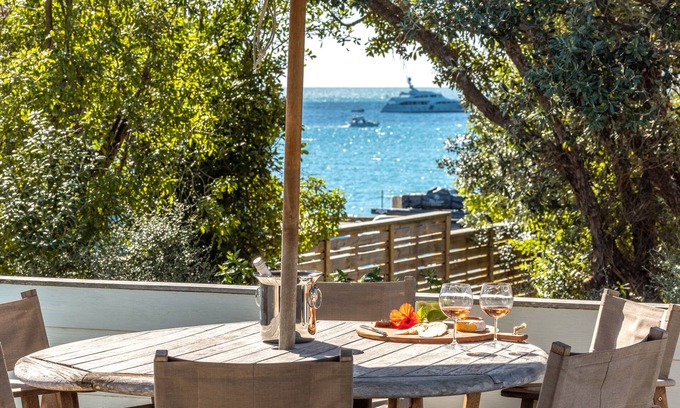 Onetangi Beach Pavilion is the ideal family beach house, located just metres from the golden sands of Onetangi beach. A sunny house with a large living area, a deck with sea views, and a huge lawn for ball games, there is plenty of room for kids and adults alike to have fun here.