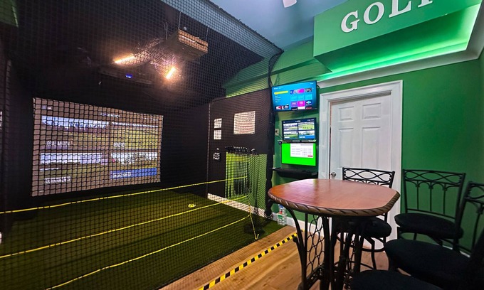 PROFESSIONAL GOLF SIMULATOR featuring state of the art Foresight Falcon overhead golf monitor, GSPro software with 1000+ courses, lefty & righty accessible, ball & club data, 4k projector display. Clubs provided, or use yours for your own tailored experience. You will not find this in any other rental!