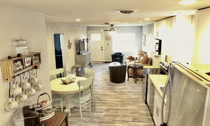 Everything here is new, fresh and clean, clean CLEAN. Internet/WiFi will handle the most demanding work (or gaming) tasks. Washer and dryer onsite. Off street parking in quiet neighborhood. The exterior and yard will be landscaped this summer. This unit is available for 30 or more day stays.