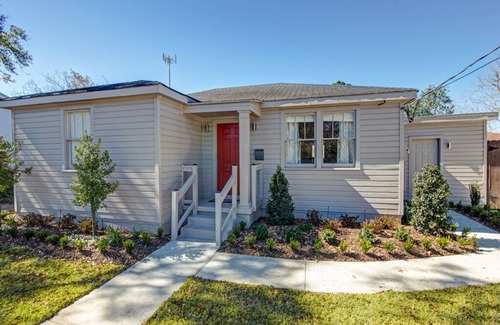 Just restored with all modern furnishings and appliances, the precious cottage is like new. 1150 Sq ft. Two bedrooms each with queen beds, one modern bathroom, Large screen TV, cable, Wi-Fi, central A/C and heat, washer and dryer, fully equipped kitchen, all linens, private fenced yard with BBQ. In a quiet neighborhood with super easy access to all of the action, casinos, French Quarter, Airport, Garden District, Museums, Art Galleries, Restaurants etc. Offstreet, parking, ceiling fans, wood floors, security system, everything you could need in your home away from home!